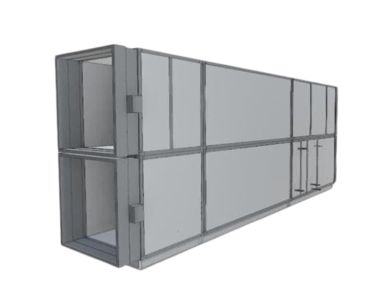 Jako podstawa, przepustnice wraz z siłownikami wewnątrz komór, żaluzje nawiewne i wywiewne zgodnie z wymaganiami